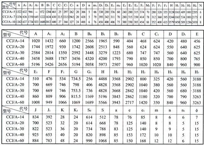 CCJ/A型沖激式除塵器有幾種不同型式的排泥漿方法,本型號為錐形漏斗排泥漿的沖激式除塵機組,定型為CCJ/A(C—沖激式;C—除塵;J—機組;A—錐形漏斗排泥漿)。按處理風量的能力分八種規格。